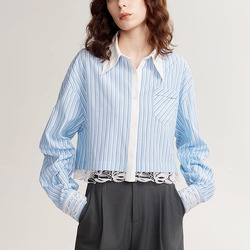 Camicia Oversize con manica a forma di Dolman a strisce blu cielo estivo da donna